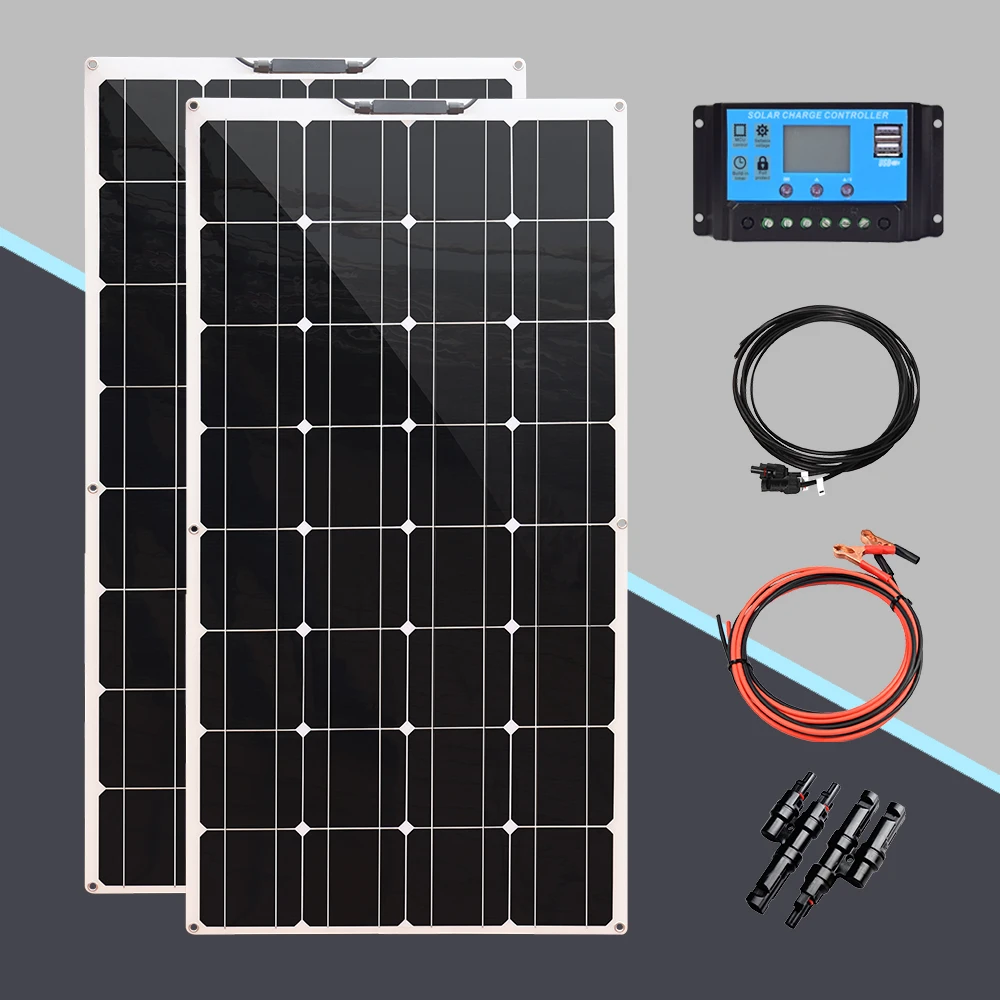 Name: panel solar placa solar 12v flexible 200w 100w Cargador solar célula solar kit completo para sistema doméstico 1000w coche barco solar caravana batería RV